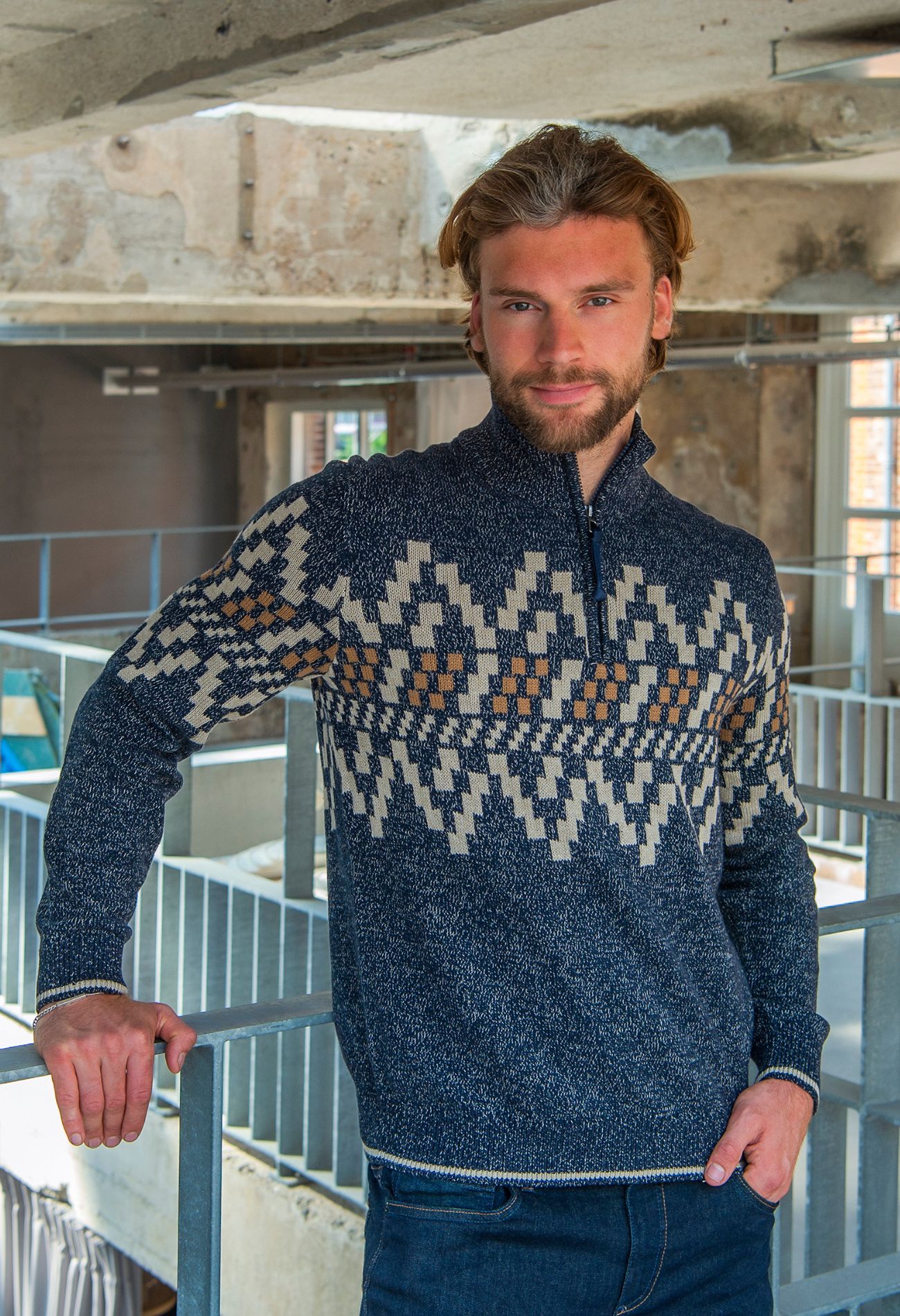 Deze warme trui van Stonecast heeft een Noors design en is mede door de hoog sluitende kraag heerlijk warm.