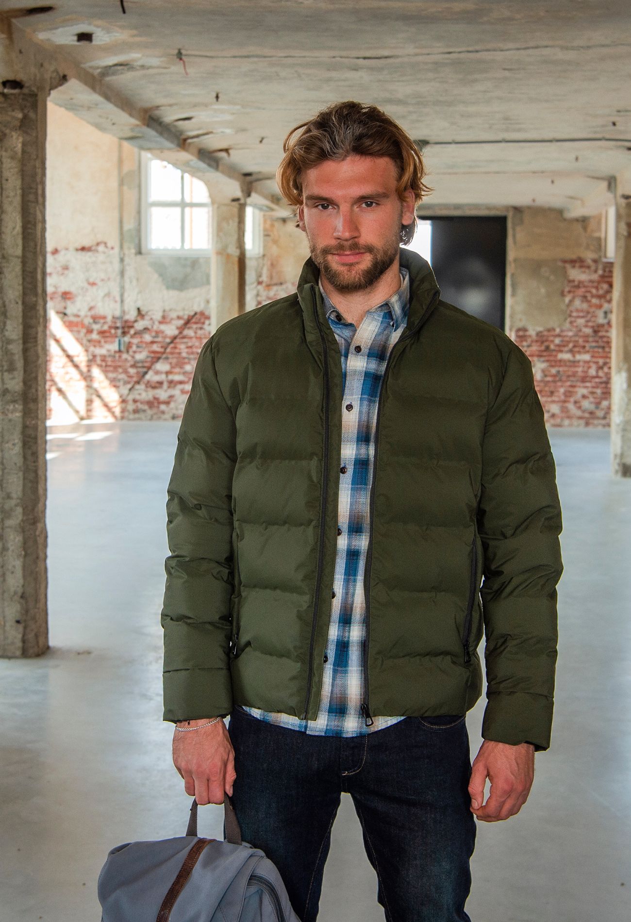 Mooie gewatteerde jas van Stonecast met ritszakken en een uitritsbare capuchon in de kraag.