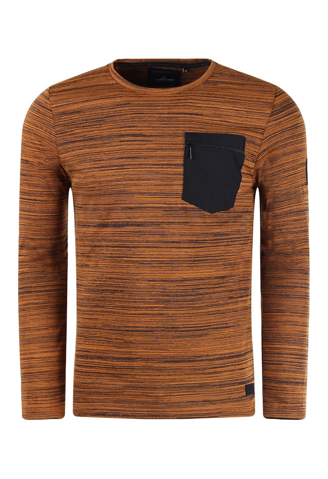 T-shirt met lange mouw van Stonecast. Het t-shirt heeft een gestreept design met een borstzak met ritst. Op een van de mouwen zit een badge. Materiaal: 70% katoen, 30% polyester. Wassen 30 graden, niet bleken, niet in de droger, kan gestreken worden.