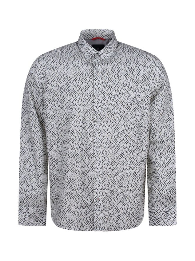 Deze blouse heeft een 2 kleurig vlekjes design. De blouse heeft lange mouwen en is een recht model, regular fit.