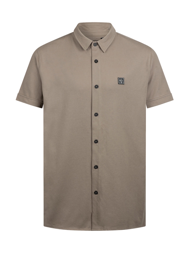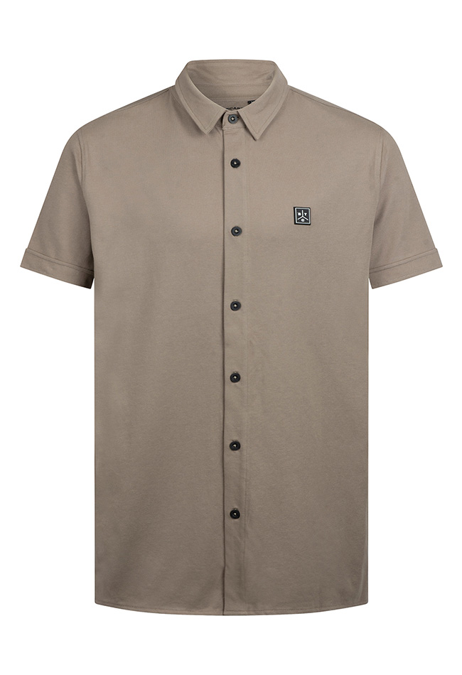 Stijlvolle herenblouse met korte mouwen, uitgevoerd in een comfortabele katoen-polyester-elastaan piquékwaliteit met een subtiele structuur voor een moderne uitstraling. De contrasterende knopen geven de blouse een eigentijds en speels detail.