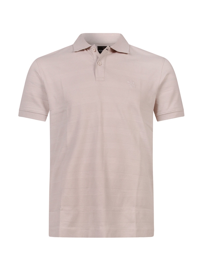 Herenpolo met korte mouwen, uitgevoerd in een katoen-polyester mix met injected structuur en een subtiel reliëfstreepdessin voor een moderne, verfijnde uitstraling. Het kleine borduurtje op de borst geeft een stijlvol en herkenbaar detail.