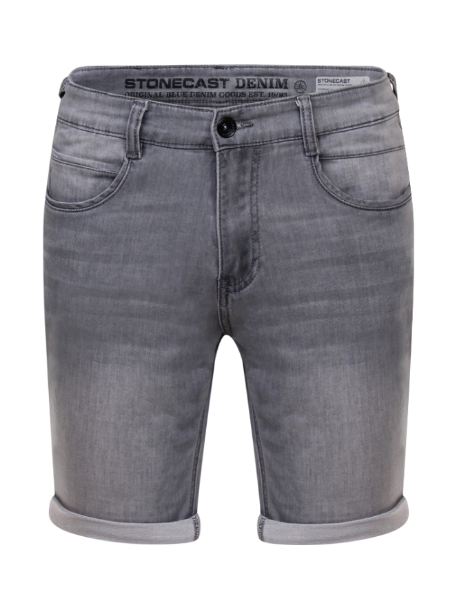 5-pocket sweatdenim short met een omslag aan de onderkant.