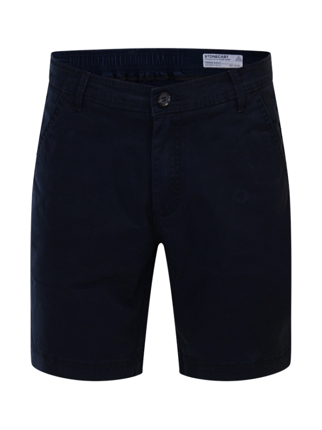Heren short met schuine steekzakken. Rond de tailleband zitten riemlussen en aan de achterkant van de tailleband is een stuk elastiek verwerkt voor een betere pasvorm. Verkrijgbaar in 3 verschillende kleuren.