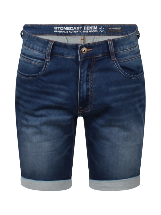 Deze denim korte broek is een 5 pocket model. draagt comfortabel door de stretch en de broekspijp kan omgeslagen gedragen worden.