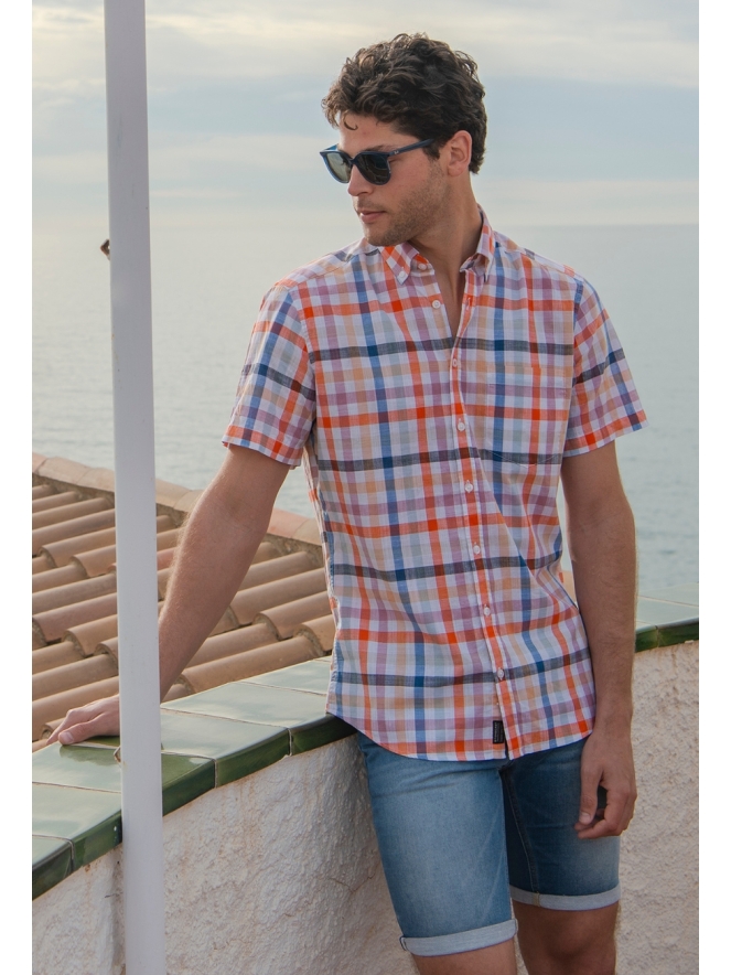 Dit 100 procent katoenen overhemd met korte mouw is een dun exemplaar en daardoor extra comfortabel voor de zomer. Het ruitmotief is basic, stijlvol en tijdloos. Draag hem op verjaardag de oranje variant met het aankomende EK voetbal of stap er mee op de fiets. Hup hup, anders is hij furt!