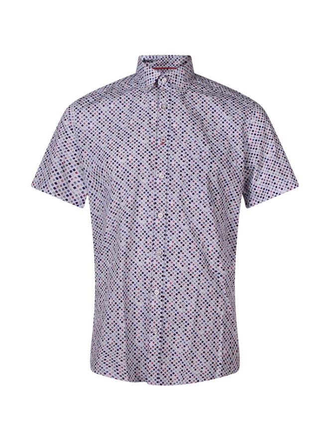 Dit herenoverhemd van Stonecast is een onmisbare zomerse klassieker. Gemaakt van 100% katoen en uitgevoerd in een luchtige kwaliteit met een minimal dots dessin, biedt het overhemd zowel comfort als stijl. De klassieke button-down kraag, korte mouwen en regular fit zorgen voor een verzorgde en toegankelijke uitstraling, terwijl het subtiele borstzakje en de knoopsluiting het ontwerp compleet maken. Perfect te combineren met een chino of short voor een casual maar nette look. Dankzij de ademende stof is dit overhemd ideaal voor de warmere maanden en een absolute must-have voor iedere zomergarderobe.