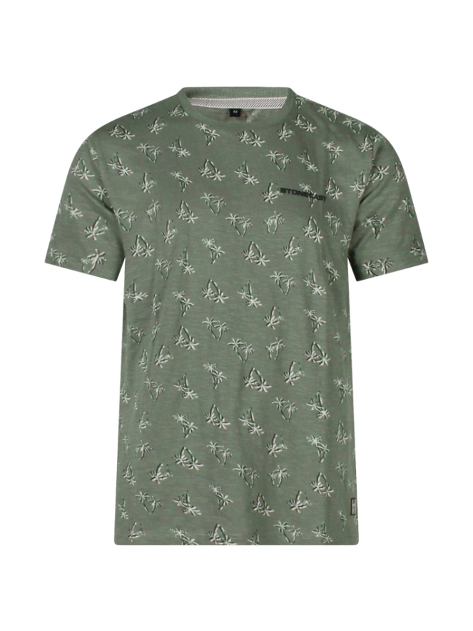 Trendy basic T-shirt met een allover print met palmbomen. Draag hem op je spijker kortebroek voor een casual look. Geschikt voor vele gelegenheden. Tijdloos en trendy!