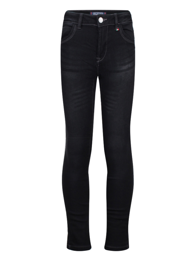 Stoere sweat denim jeans van Unlocked voor jongens. Deze 5 pocket sluit met een rits en haak sluiting en is verder neutraal. De lengte nog wat lang? Sla de broekspijp dan even om. Zo heb je een broek op de groei want ook de taille is verstelbaar.