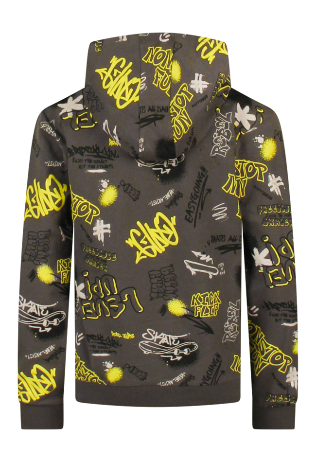 Fijne hoodysweater waar je lekker in weg kan duiken! De drukke graffiti print zit vol met tekeningen en teksten. Voor stoere boys!