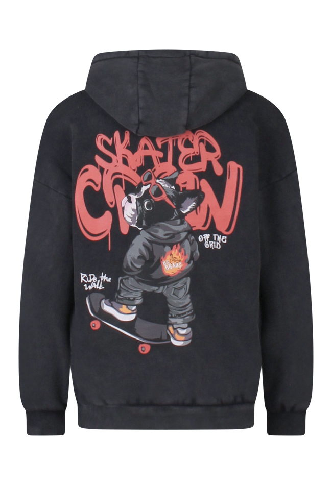 Stoere sweater met grote 'Skater crew' print op de rug. Deze sweater heeft een capuchon en combineer je gemakkelijk met een fijne spijkerbroek. Stoer, tijdloos en trendy!