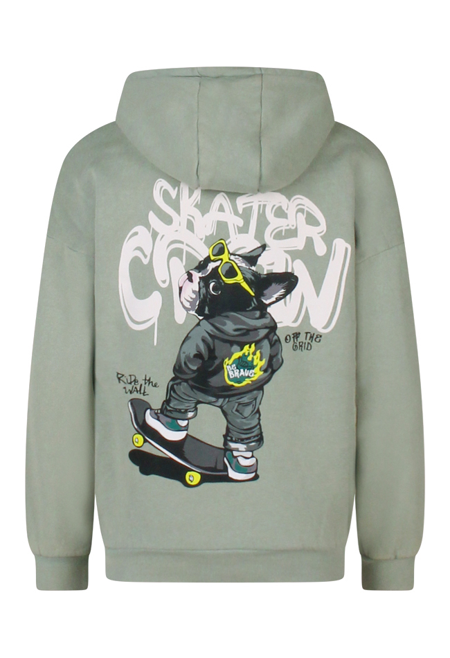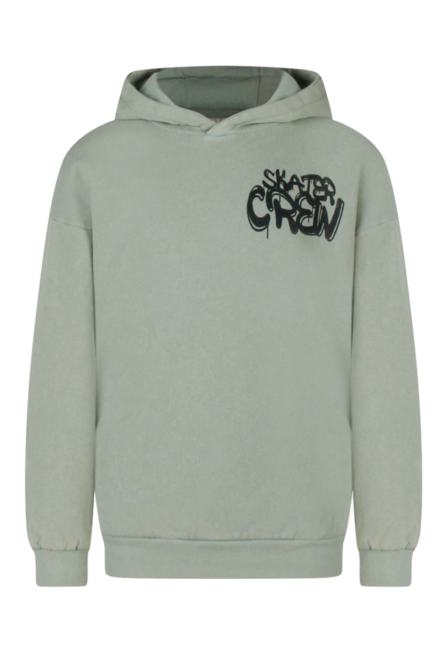 Stoere sweater met grote 'Skater crew' print op de rug. Deze sweater heeft een capuchon en combineer je gemakkelijk met een fijne spijkerbroek. Stoer, tijdloos en trendy!