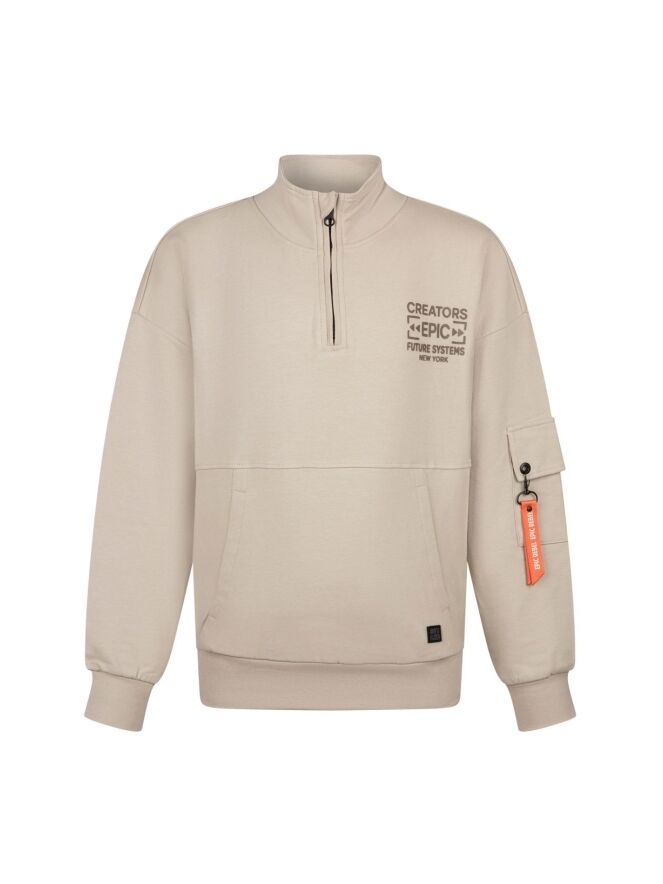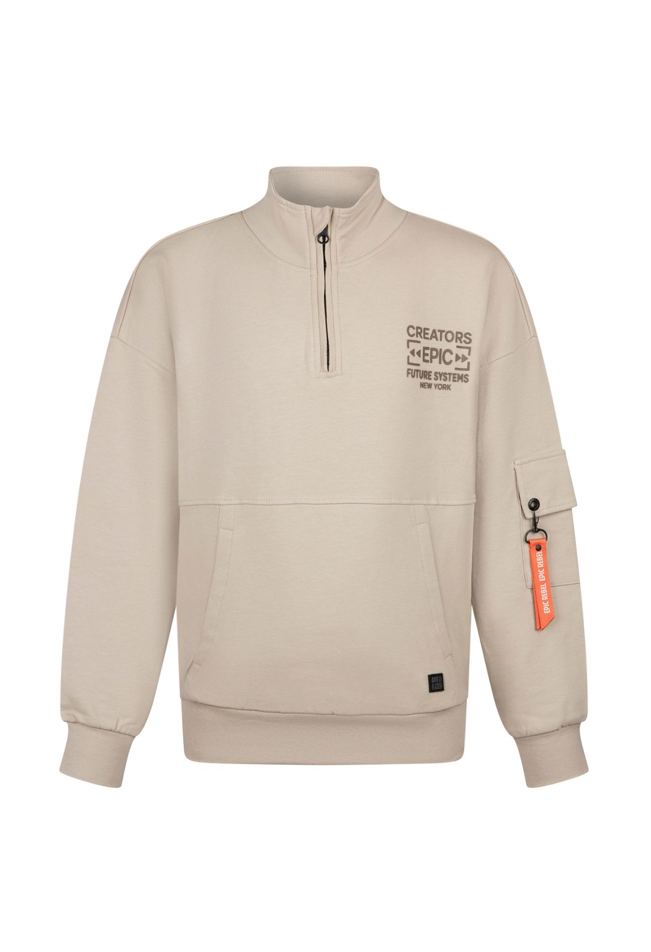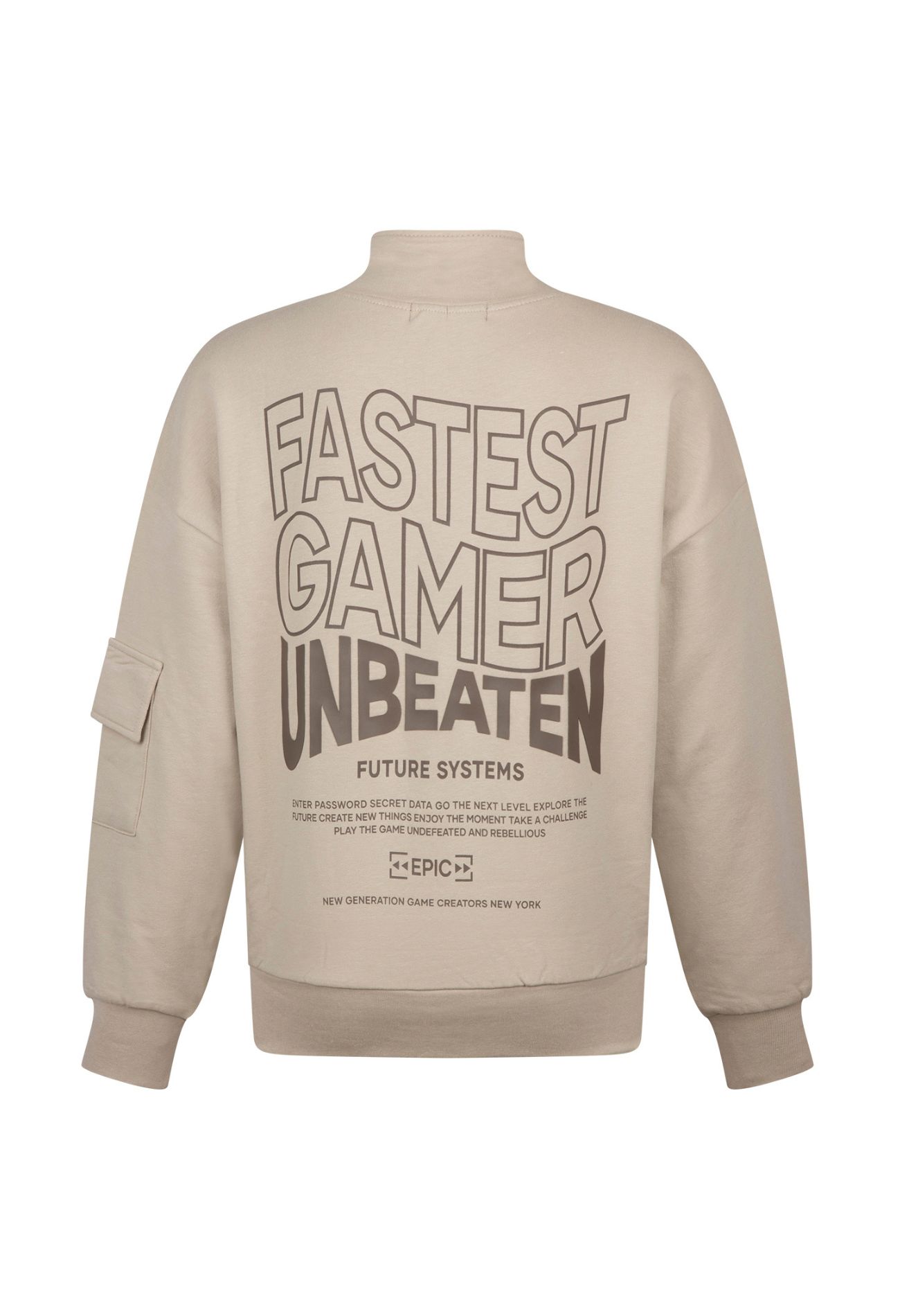 Trendy vest met leuke details zoals het kangeroevak voorop, de korte rits en de print voor en achterop. Dit sweatervest laat zich makkelijk combineren met jeans!