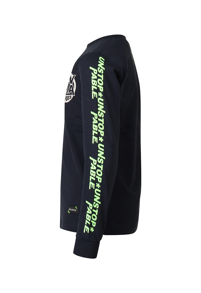 Fijn shirt met vele opdrukken zoals op de mouwen, voorop en een kleine opdruk achterop. Makkelijk te combineren met spijkerbroeken. Voor een casual look met een vleugje stoer!