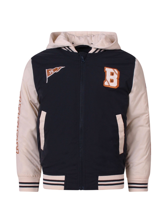Dit stoere baseballjack voor jongens is voorzien van een sweat capuchon, opvallende badges en een afneembare capuchon.