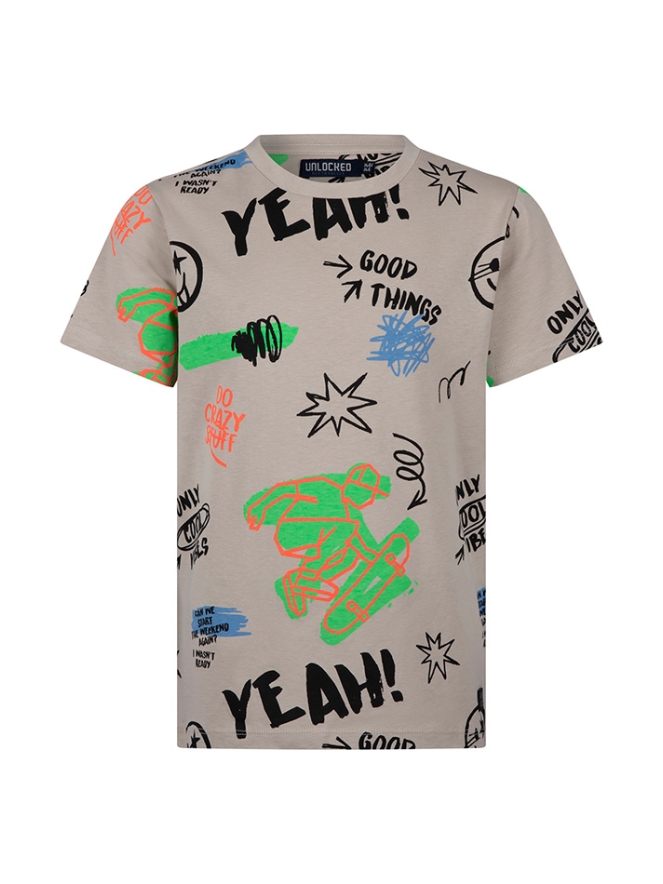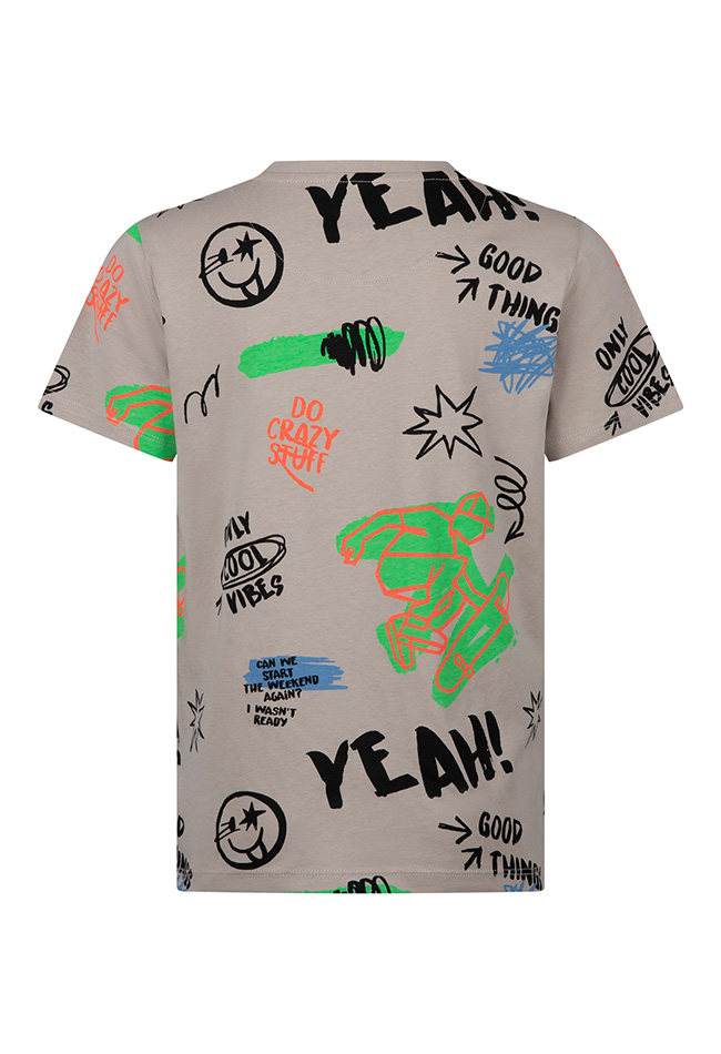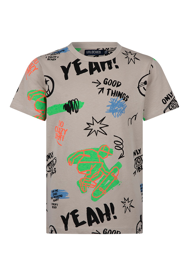 Stoer T-shirt vol met graffiti prints en teksten! Altijd leuk te combineren met een mooi spijkerbroek, kort of lang.