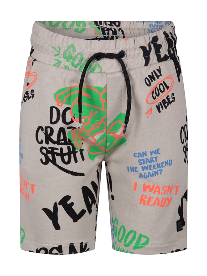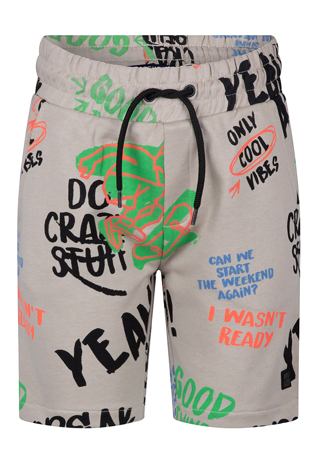 Mooie sweat kortebroek met een allover graffiti print. Hou je van sets? Dan hebben we in dezelfde print ook een hoodysweater en T-shirt met art.nr. Z10249 en Z10248. Vind je het too mutch print? Combineer het dan met een effen T-shirt voor een rustiger beeld.