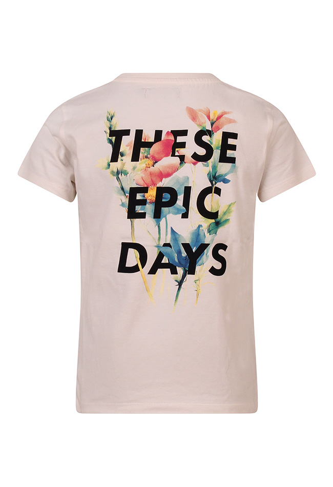 Dit T-shirt combineert stoere en speelse details voor een look die elke jongen wil dragen. Op de voorkant staat een kleine tekstprint, terwijl de grote bloemenprint op de rug een echte eyecatcher is. Met de tekst These Epic Days straalt het shirt energie en avontuur uit, zodat elke dag een beetje epischer wordt.