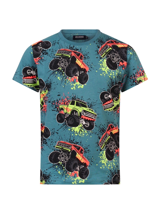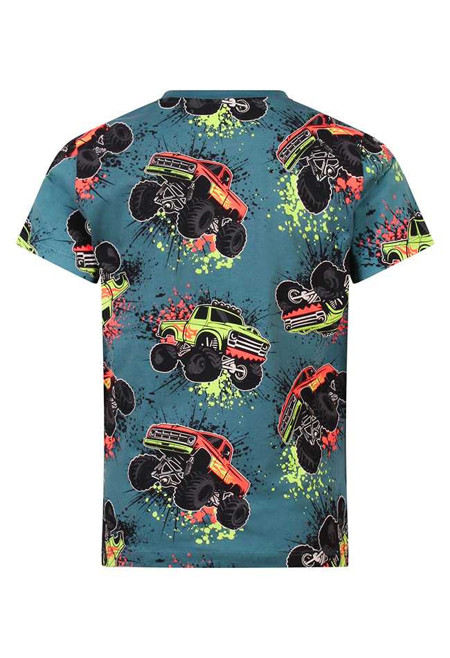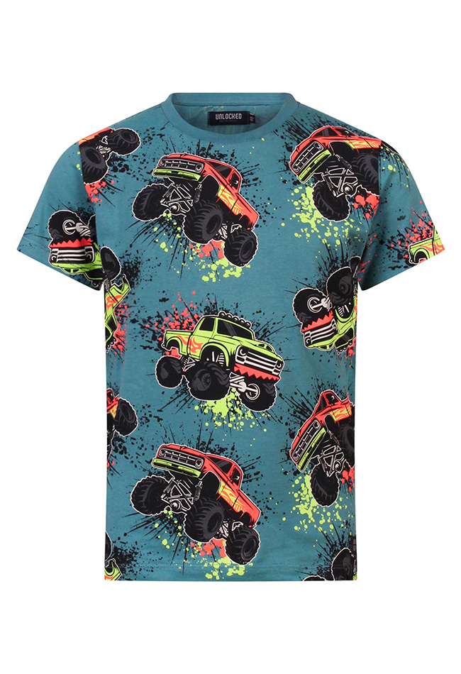 Laat de kracht van monstertrucks los op je outfit! Op dit T-shirt doen de grootste en stoerste monstertrucks de gekste moves, van spectaculaire sprongen tot mega stunts. Perfect voor jongens die van avontuur, snelheid en spektakel houden.