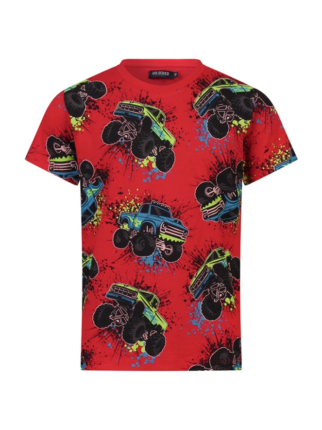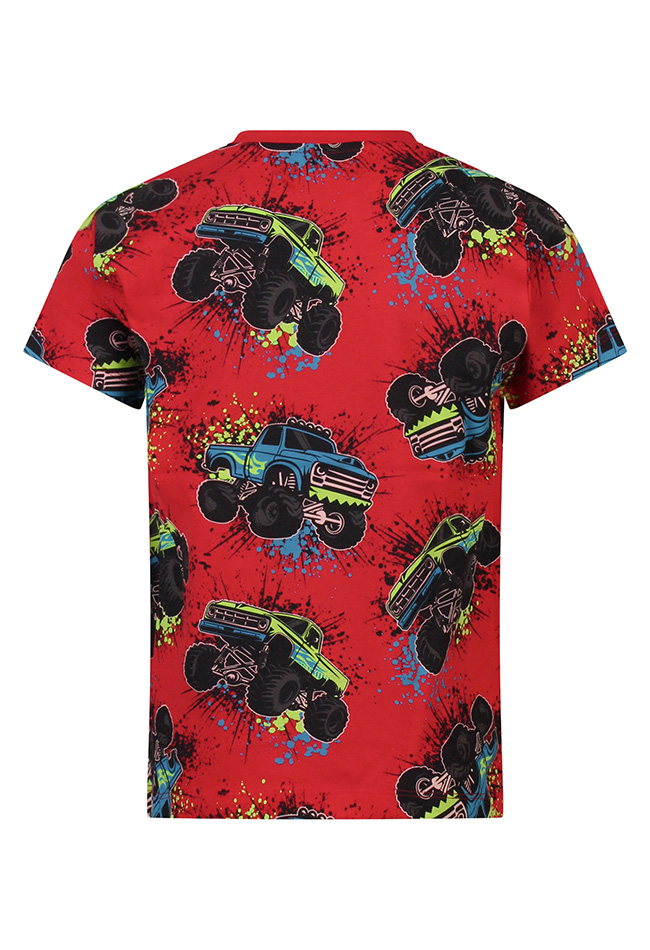 Laat de kracht van monstertrucks los op je outfit! Op dit T-shirt doen de grootste en stoerste monstertrucks de gekste moves, van spectaculaire sprongen tot mega stunts. Perfect voor jongens die van avontuur, snelheid en spektakel houden.