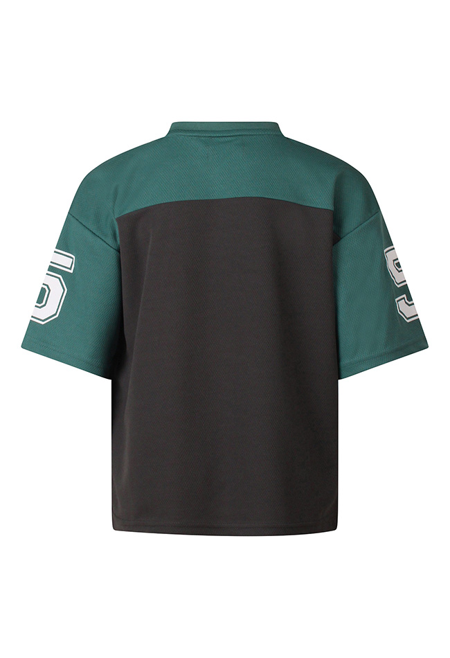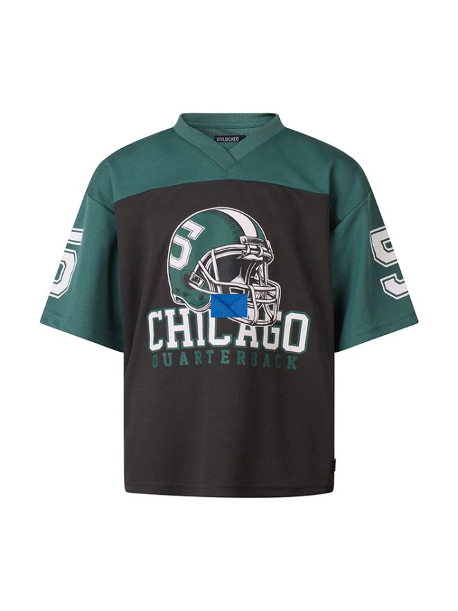 Een krachtig shirt voor echte sportfans die klaar zijn om te scoren! Dit stoere American football shirt is perfect voor sportieve jongens. De opvallende Chicago quarterback print met helm geeft het shirt een echte wedstrijd uitstraling, alsof je midden op het veld staat.Het model is voorzien van een V-halsje, wat zorgt voor een authentieke sportieve touch. Gemaakt van comfortabele stof is dit shirt ideaal voor dagelijks gebruik, buitenspelen of om gewoon in te relaxen.