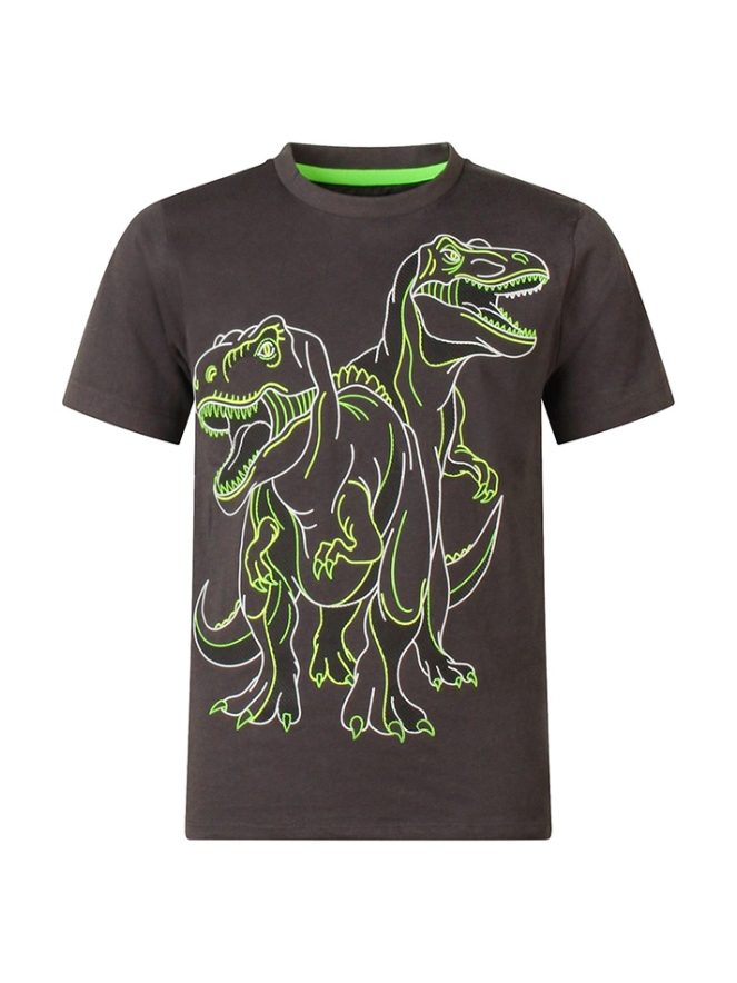 Laat je kleine avonturier brullen van plezier met dit stoere T-shirt voor jongens. Het shirt is bedekt met coole dino?s, alsof ze zo uit Jurassic Park zijn gestapt ? Grrrrr! Perfect voor jonge ontdekkingsreizigers die van spannende verhalen en prehistorische dieren houden.