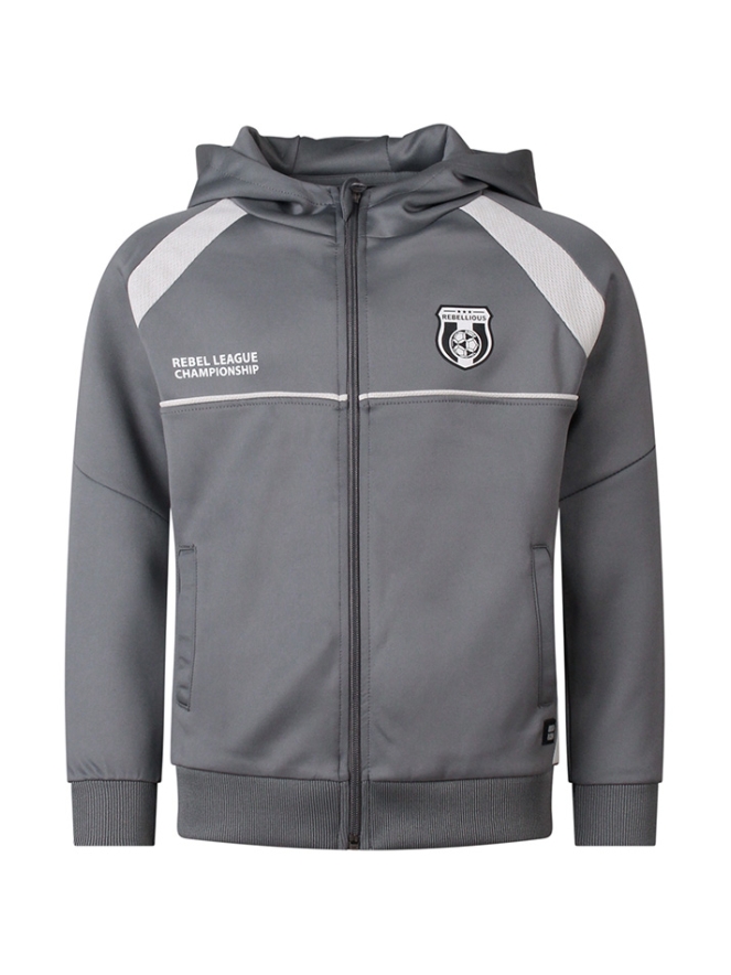 Een must-have vest voor elke jonge voetbalfan die klaar is om te scoren! Voorzien van een comfortabele capuchon en een fijne pasvorm is dit vest perfect voor school, sport of vrije tijd. Draag het open over een T-shirt of combineer het met een sportieve broek voor een complete, stoere look. Het vest heeft een sportieve uitstraling met het opvallende Rebel League Championship thema.