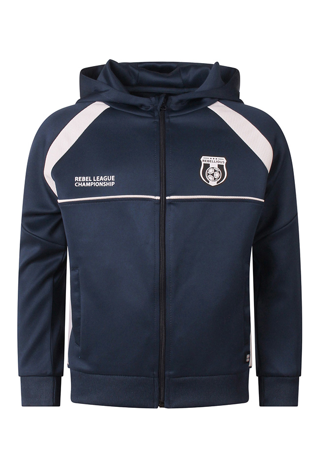 Een must-have vest voor elke jonge voetbalfan die klaar is om te scoren! Voorzien van een comfortabele capuchon en een fijne pasvorm is dit vest perfect voor school, sport of vrije tijd. Draag het open over een T-shirt of combineer het met een sportieve broek voor een complete, stoere look. Het vest heeft een sportieve uitstraling met het opvallende Rebel League Championship thema.