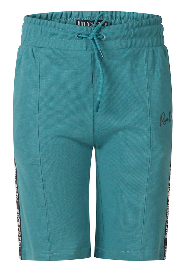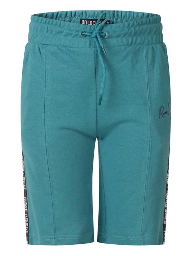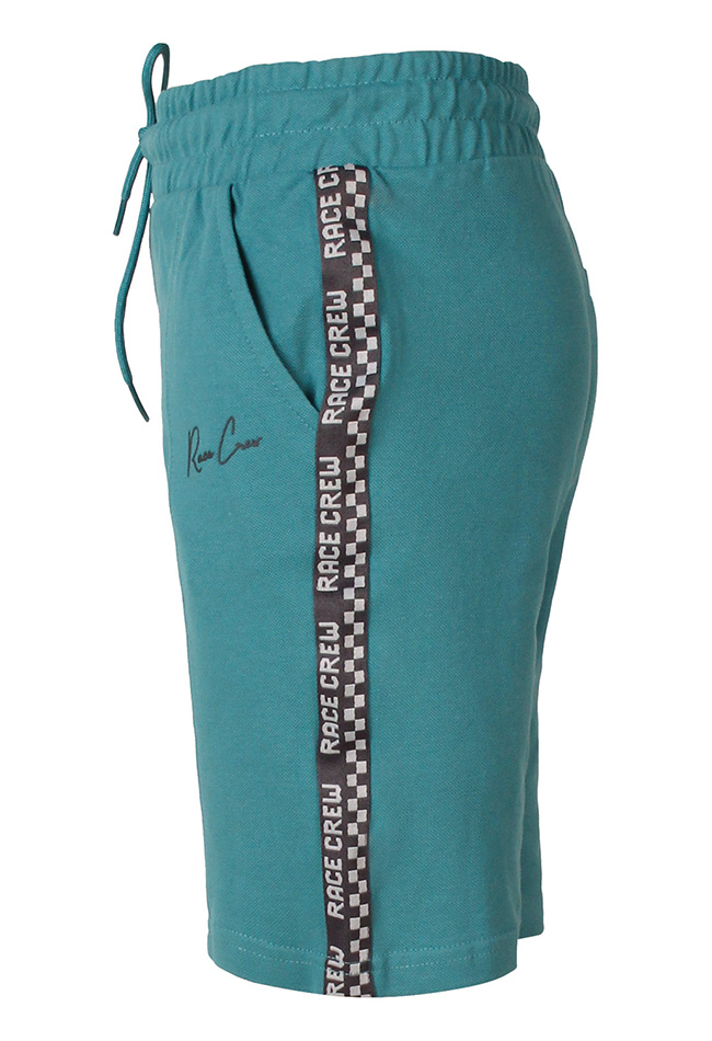 Jongens korte broek met praktische zakken en een comfortabele sluiting met koord. De opnaad aan de voorkant geeft een stoere uitstraling, terwijl de bies met tekst â??Race Crewâ? zorgt voor een sportieve en trendy finishing touch.