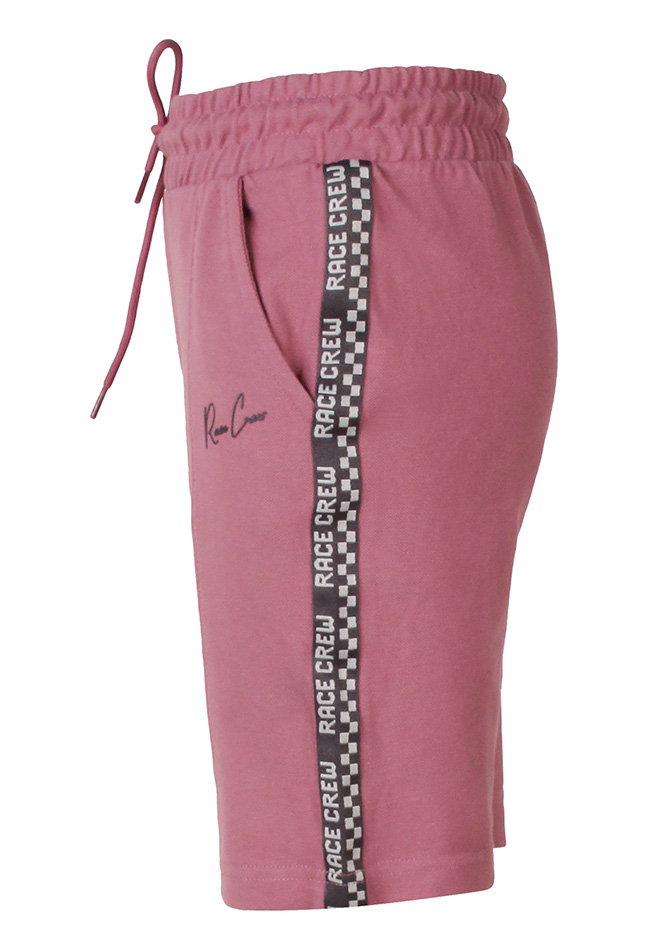 Jongens korte broek met praktische zakken en een comfortabele sluiting met koord. De opnaad aan de voorkant geeft een stoere uitstraling, terwijl de bies met tekst â??Race Crewâ? zorgt voor een sportieve en trendy finishing touch.