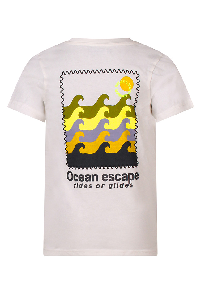 Relaxt summer T-shirt! Dit shirt van Unlocked heeft een prachtige Ocean Escape golf print op de rug en twee kleinere op de rug. Voor een chille look goed te combineren op korte of lange spijkerbroek. Beach boy alert!