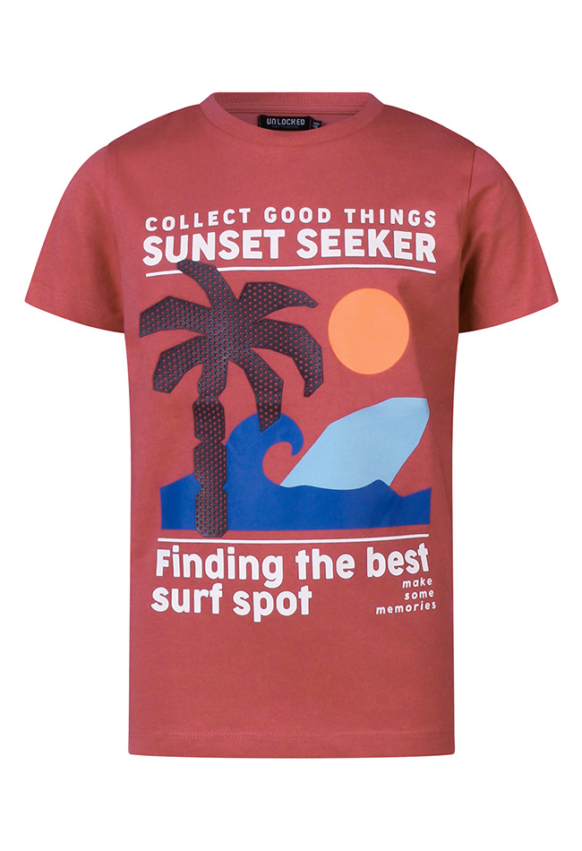 Sunset seeker T-shirt van Unlocked met een prachtige grote print op de voorkant. Finding the best surf spot!
