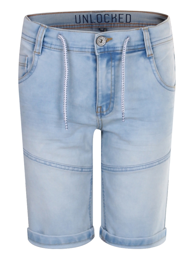 Jeans short van Unlocked. Deze korte borek heeft een verstelbare tailleband en koorden aan de voorkant. Aan de voorkant 2 zakken en op de achterkant 2 kontzakken. De broekspijken kunnen rechtuit of omgeslagen gedragen worden.