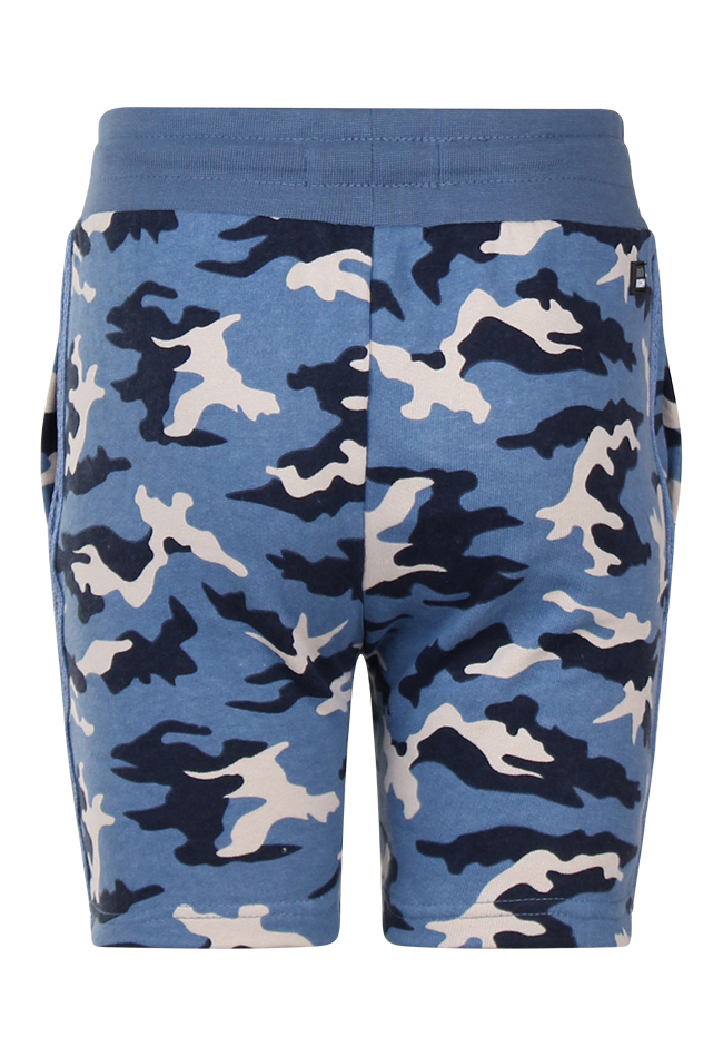 Sweat short met een allover camouflageprint een elastische tailleband met koord er doorheen en steekzakken.