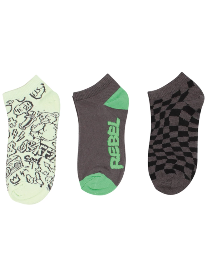 Deze sneakersokken in 3-pack hebben een graffiti en blokjesprint.