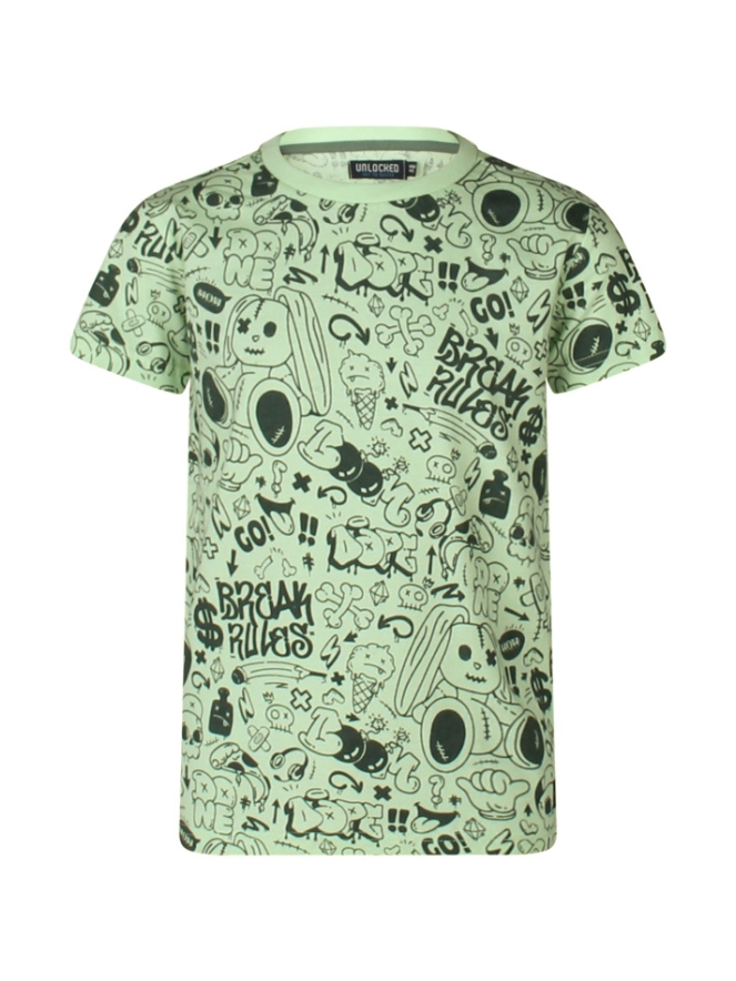 Stoer T-shirt van Unlocked met een allover graffiti print. Voor een stoere look makkelijk te combineren met een spijkerbroek en sneakers.