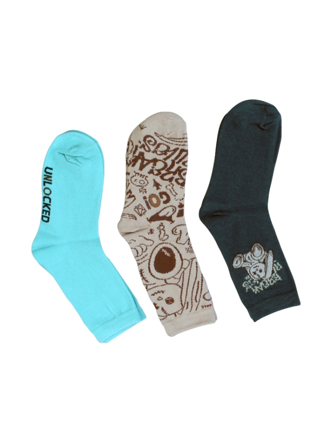 3-Pack sokken voor jongens met 1 paar effen sokken en 2 paar met afbeelding beer.