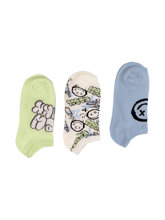 3-Pack stoere enkel sneaker sokken met graffiti prints en smileys.