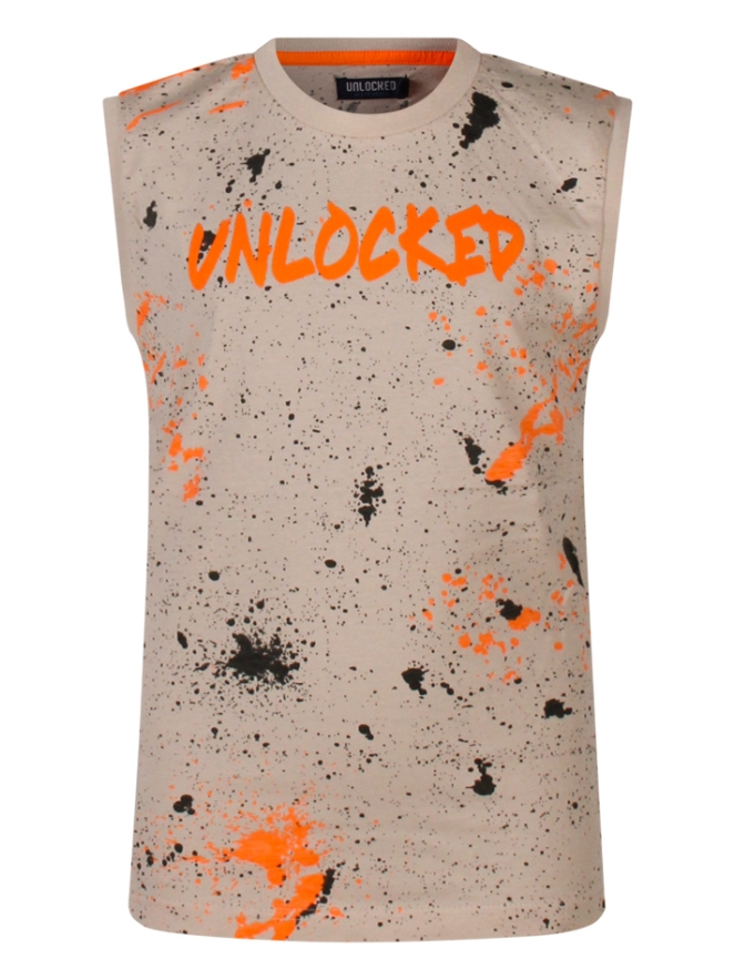 Het singlet heeft een opvallende spetterprint en een coole tekstprint op de borst. Dankzij de mouwloze pasvorm en de zachte stof is het singlet ideaal voor warme dagen. Perfect te combineren met een korte broek voor een casual en sportieve look!