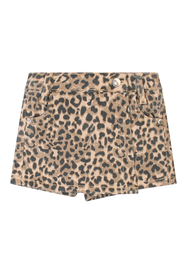 Deze leuke blikvanger is een skort. De overslag sluit je makkelijk met een drukknoopje. 4 Zakken, verstelbaar in de taille en achter in de taille zit nog extra elastiek.
