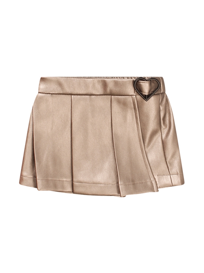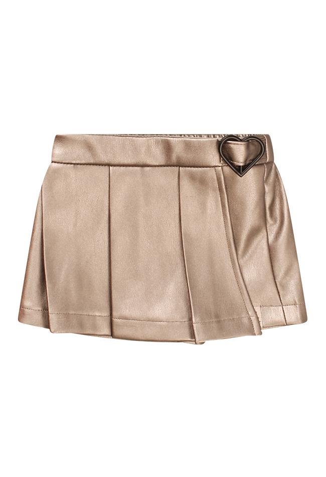 Deze schattige PU skort is een speelse combinatie van een rokje en een broekje, speciaal ontworpen voor baby meisjes. De geplooide voorkant geeft het skortje een klassieke uitstraling, terwijl de hartvormige buckle zorgt voor een extra lief detail. Dankzij de elastische tailleband aan de achterkant zit het skortje altijd comfortabel en blijft het goed op z'n plek.