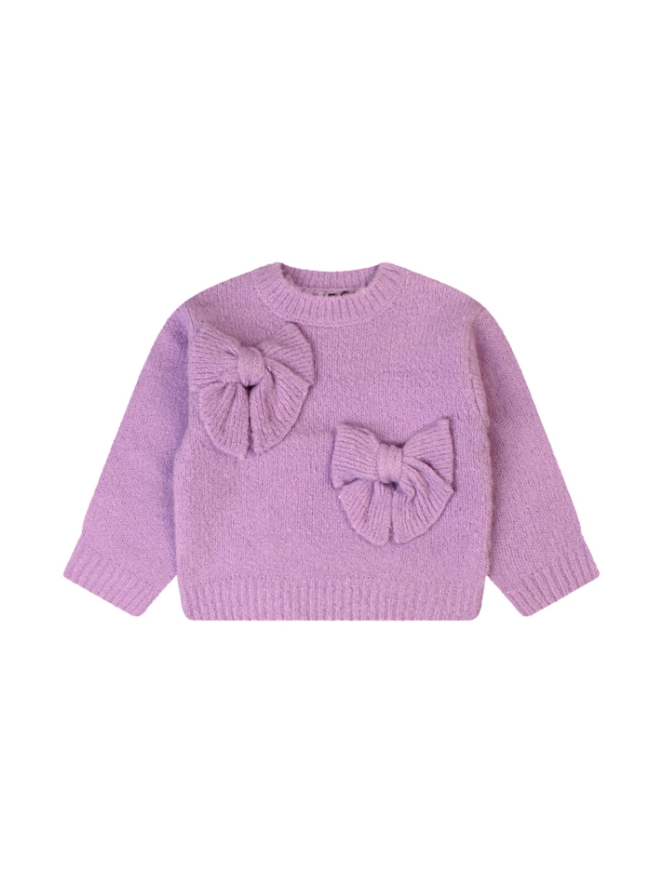 Deze gebreid trui is een lief en stijlvol item voor de koudere dagen. De trui is afgewerkt met twee schattige, gebreide strikken op de voorkant die zorgen voor een speelse en meisjesachtige uitstraling. Gemaakt van een zachte brei, voelt hij heerlijk comfortabel aan en is hij perfect te combineren met een jeans voor een casual outfit.