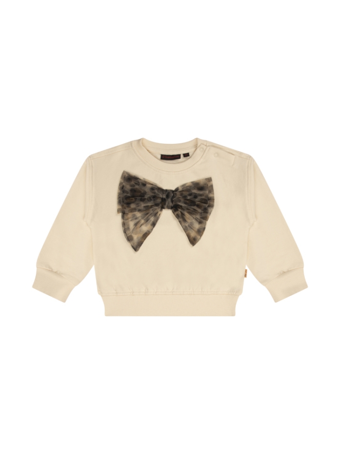 Deze baby meisjes sweater is zacht en comfortabel dankzij de zachte binnenkant. De grote panter mesh strik maakt de sweater extra bijzonder en geeft een speelse, stoere uitstraling. Perfect te combineren met een stoere jeans voor een trendy look.