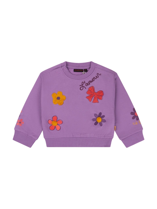 L'amour, Je taime.... Deze sweater staat vol met geborduurde, opgedrukte en appliek opdrukjes. Zoete sweater voor zoete meisjes.