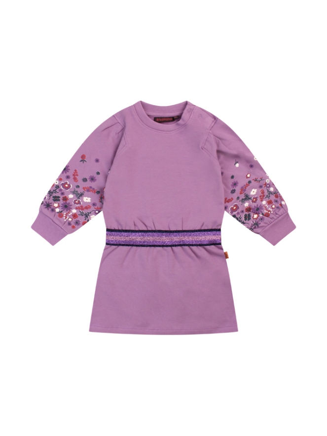 Deze schattige jurk met puff mouwen en bloemenprint op de mouwen is zowel stijlvol als comfortabel. Het jurkje is heerlijk zacht van binnen, ideaal voor de koude dagen, en heeft handige drukknopen op de schouder voor makkelijk aan- en uitkleden.