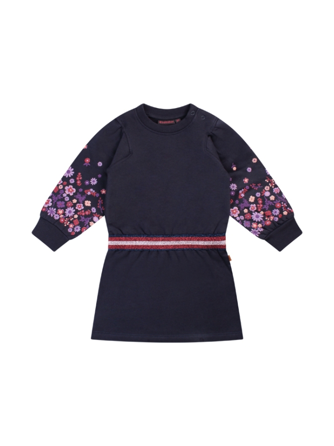 Deze schattige jurk met puff mouwen en bloemenprint op de mouwen is zowel stijlvol als comfortabel. Het jurkje is heerlijk zacht van binnen, ideaal voor de koude dagen, en heeft handige drukknopen op de schouder voor makkelijk aan- en uitkleden.