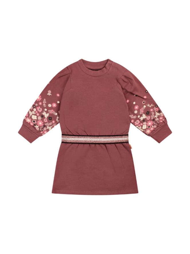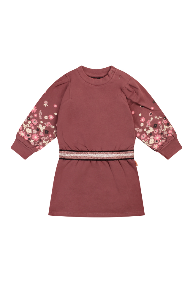 Deze schattige jurk met puff mouwen en bloemenprint op de mouwen is zowel stijlvol als comfortabel. Het jurkje is heerlijk zacht van binnen, ideaal voor de koude dagen, en heeft handige drukknopen op de schouder voor makkelijk aan- en uitkleden.