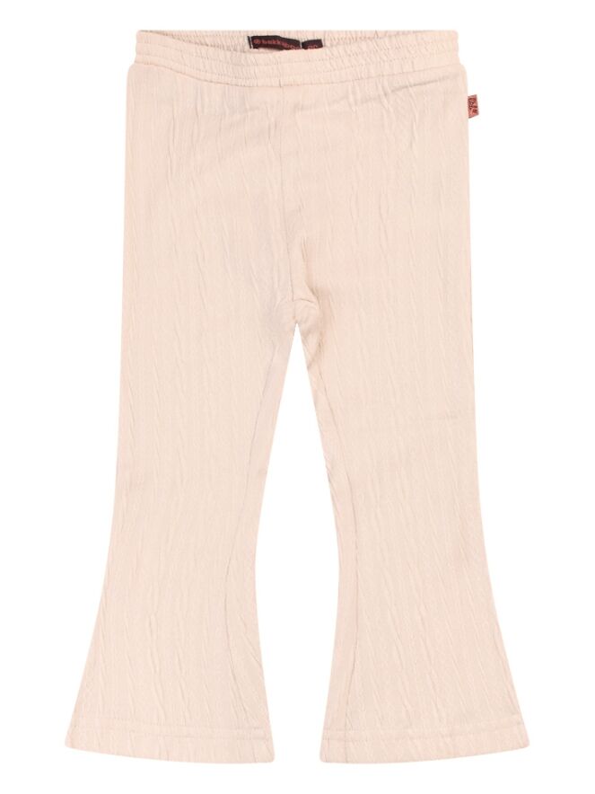Dit flared broekje voor baby meisjes is gemaakt van een zachte, stretchy stof die lekker zit én makkelijk meebeweegt. De uitlopende pijpjes geven het broekje een trendy twist, terwijl de comfortabele tailleband zorgt voor een perfecte pasvorm. Leuk met een schattig shirtje of romper voor een complete mini-me look!