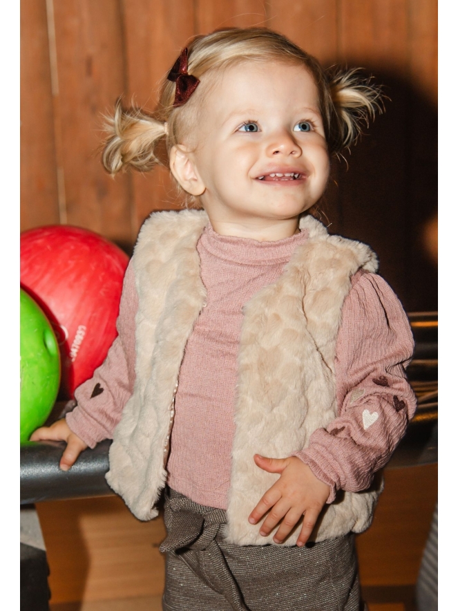 De leukste outfitjes maak je af met een giletje! Deze van faux fur is ook nog eens lekker warm en mega zacht. Je kan hem loslaten aan de voorkant of sluit hem met een eenvoudig knoopje. Ontzettend leuk over een shirtje met lange of kort mouw, flair broekje eronder en klaar!