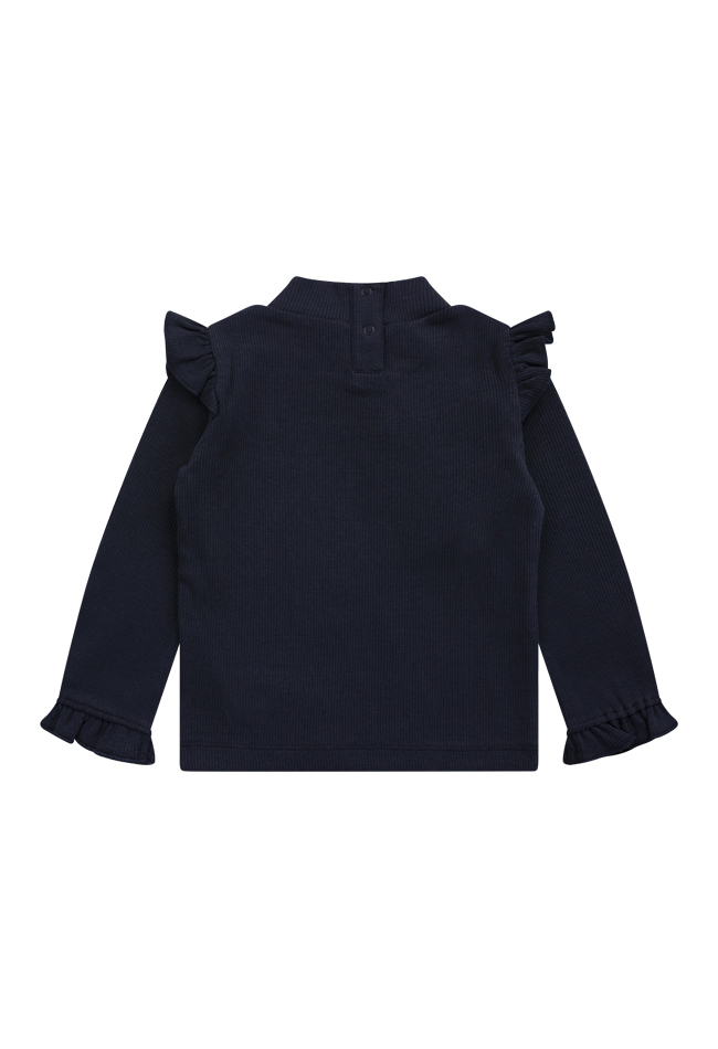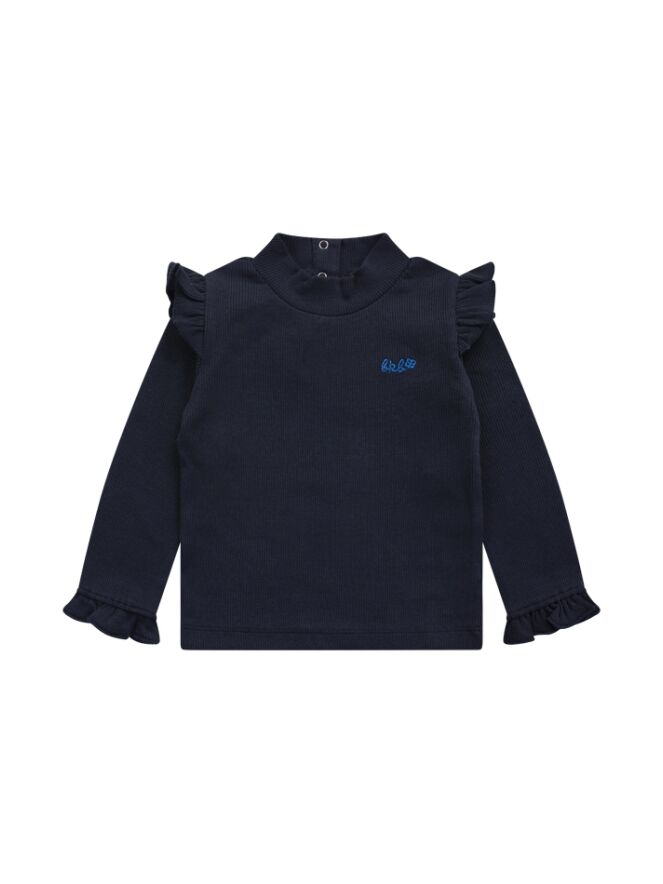 Leuke modieuze basic die niet in de garderobe van jouw mini me mag ontbreken! Dit shirt met leuke ruche over de schouder en warme turtleneck hebben we voor jou in 8 kleuren. Laten we zeggen, een voor iedere dag! Combineer het op een jeans en maak het af met een leuk giletje van teddy of denim!